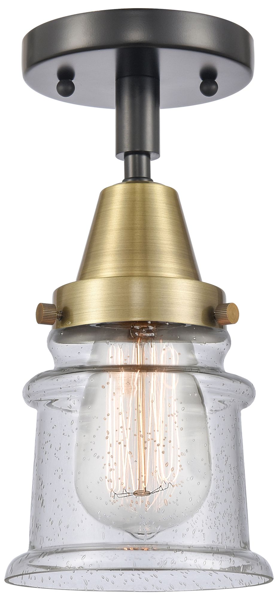Caden Canton 5.25" Wide Black Antique Brass Flush Mount With Seedy Sha