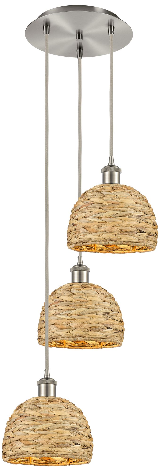 Woven Rattan 18.5"W 3 Light Brushed Satin Nickel Corded Multi Pendant