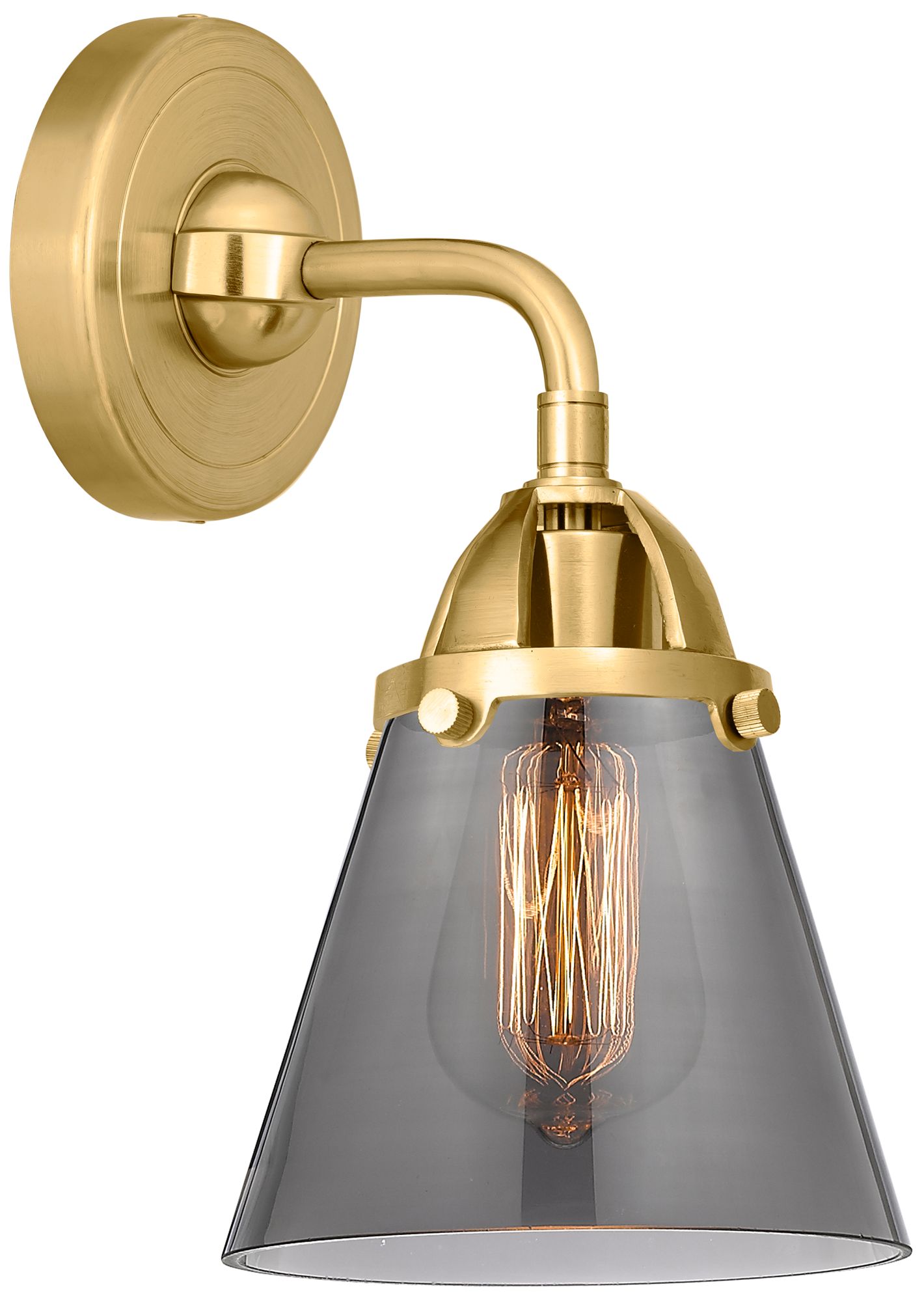 Nouveau 2 Cone 6" LED Sconce - Gold Finish - Plated Smoke Shade