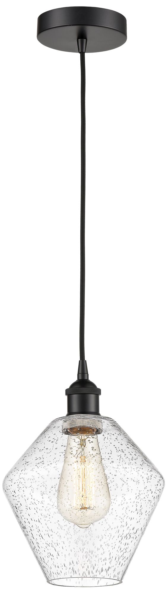 Cindyrella 8" Matte Black Mini Pendant w/ Seedy Shade