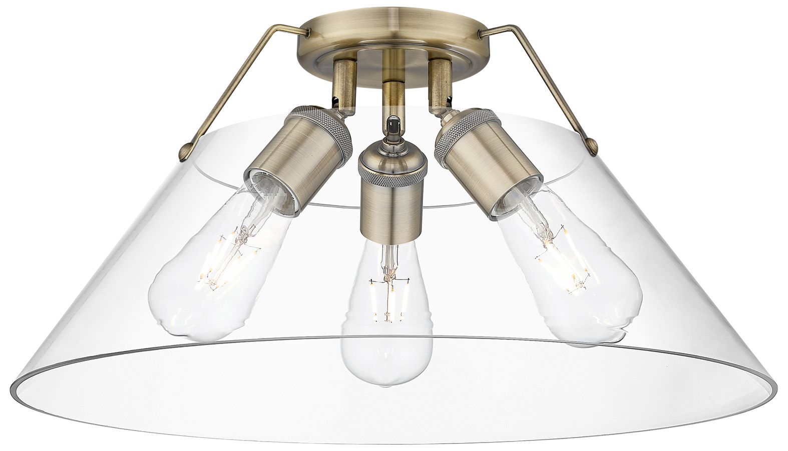 Orwell 18 3/4" Wide 3-Light Flush Mount in Aged Brass with Clear Glass