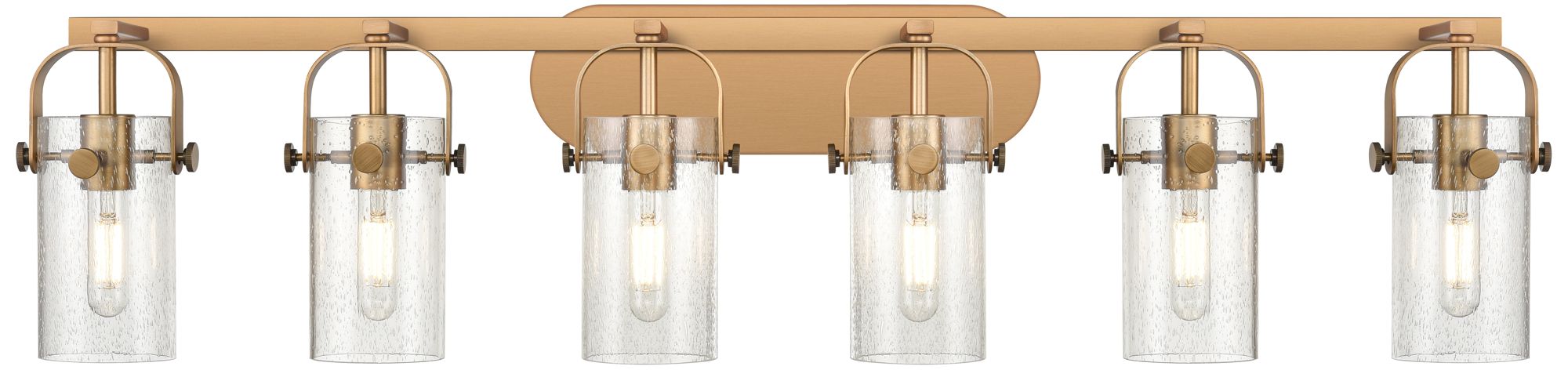 Pilaster II Cylinder 44"W 6 Light Brushed Brass Bath Light w/ Seedy Sh