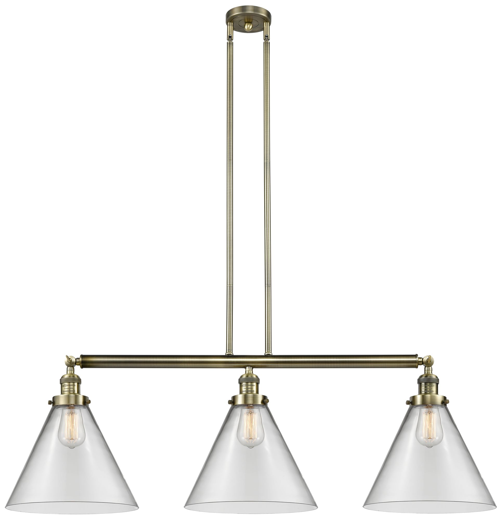 Cone 3 Light 44" Island Light - Antique Brass - Clear Shade