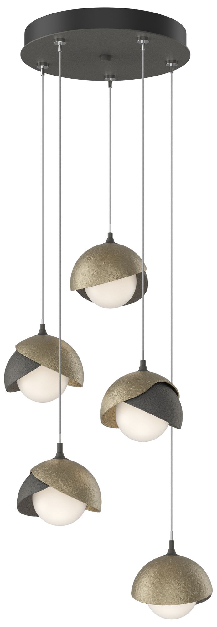 Brooklyn 16"W 5-Light Gold Accented Iron Standard Double Shade Pendant