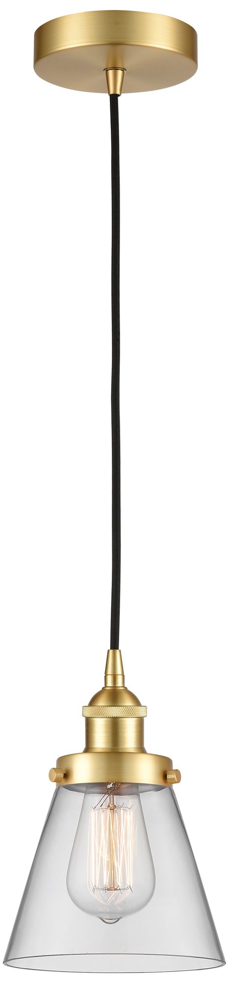 Cone 6" Satin Gold Mini Pendant w/ Clear Shade