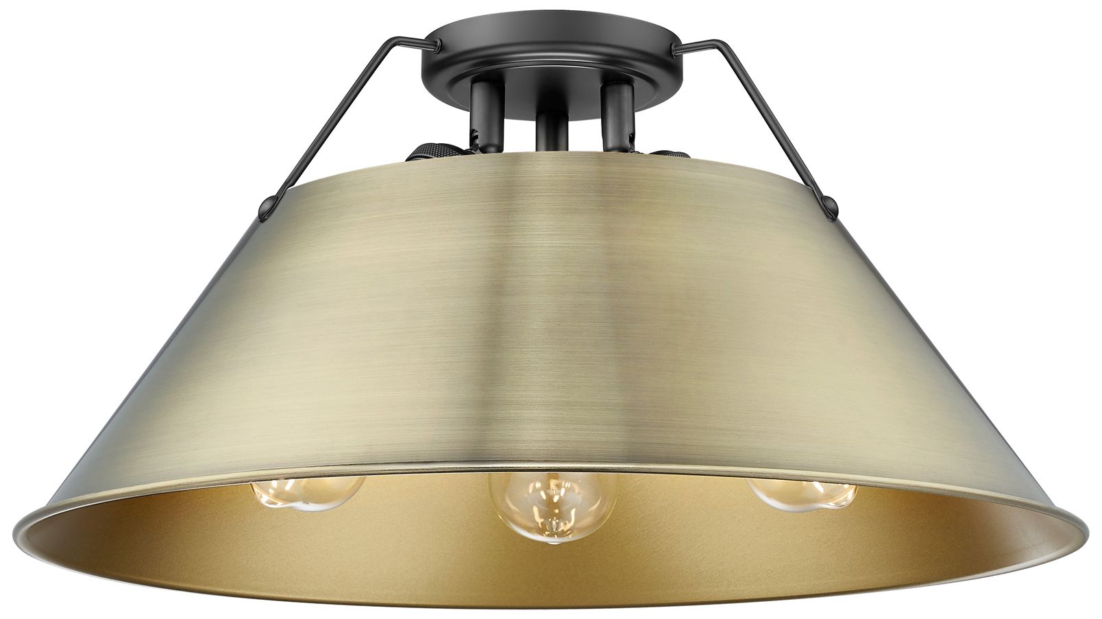 Orwell 18 3/4" Wide 3-Light Flush Mount in Matte Black with Aged Brass