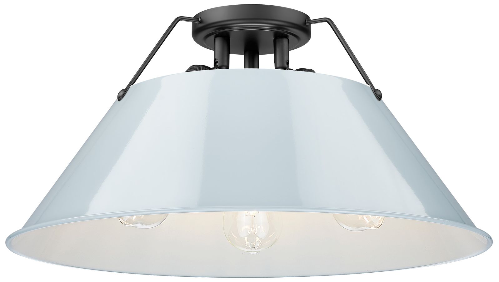 Orwell 18 3/4" Wide 3-Light Flush Mount in Matte Black with Dusky Blue