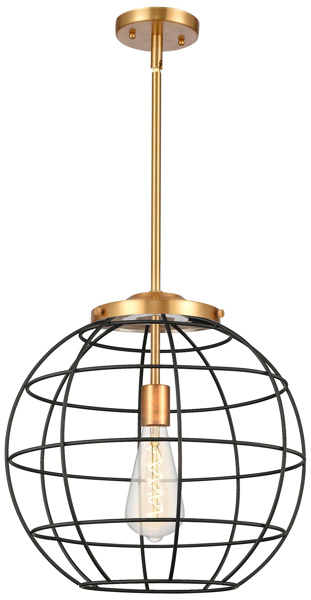 Lake Placid 16" Wide Satin Gold Stem Hung Pendant With Matte Black Sha