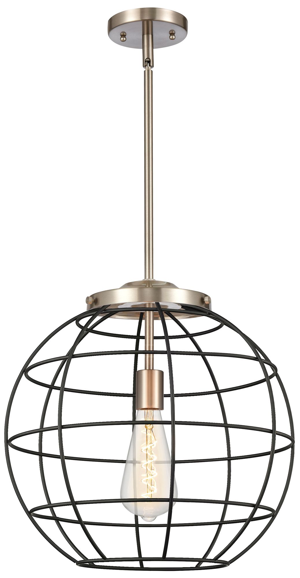 Lake Placid 16" Wide Satin Nickel Stem Hung Pendant With Matte Black S