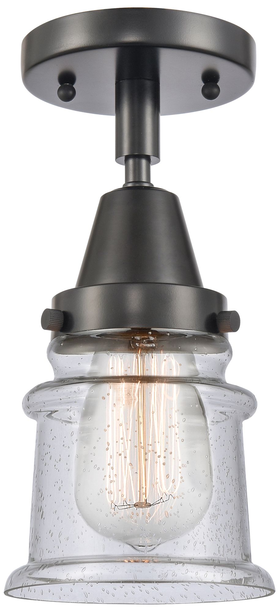 Caden Canton 5.25" Wide Matte Black Flush Mount With Seedy Shade