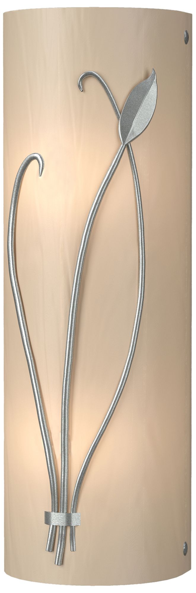 Forged Leaf and Stem 17"H Left Vintage Platinum Sconce w/ White Glass