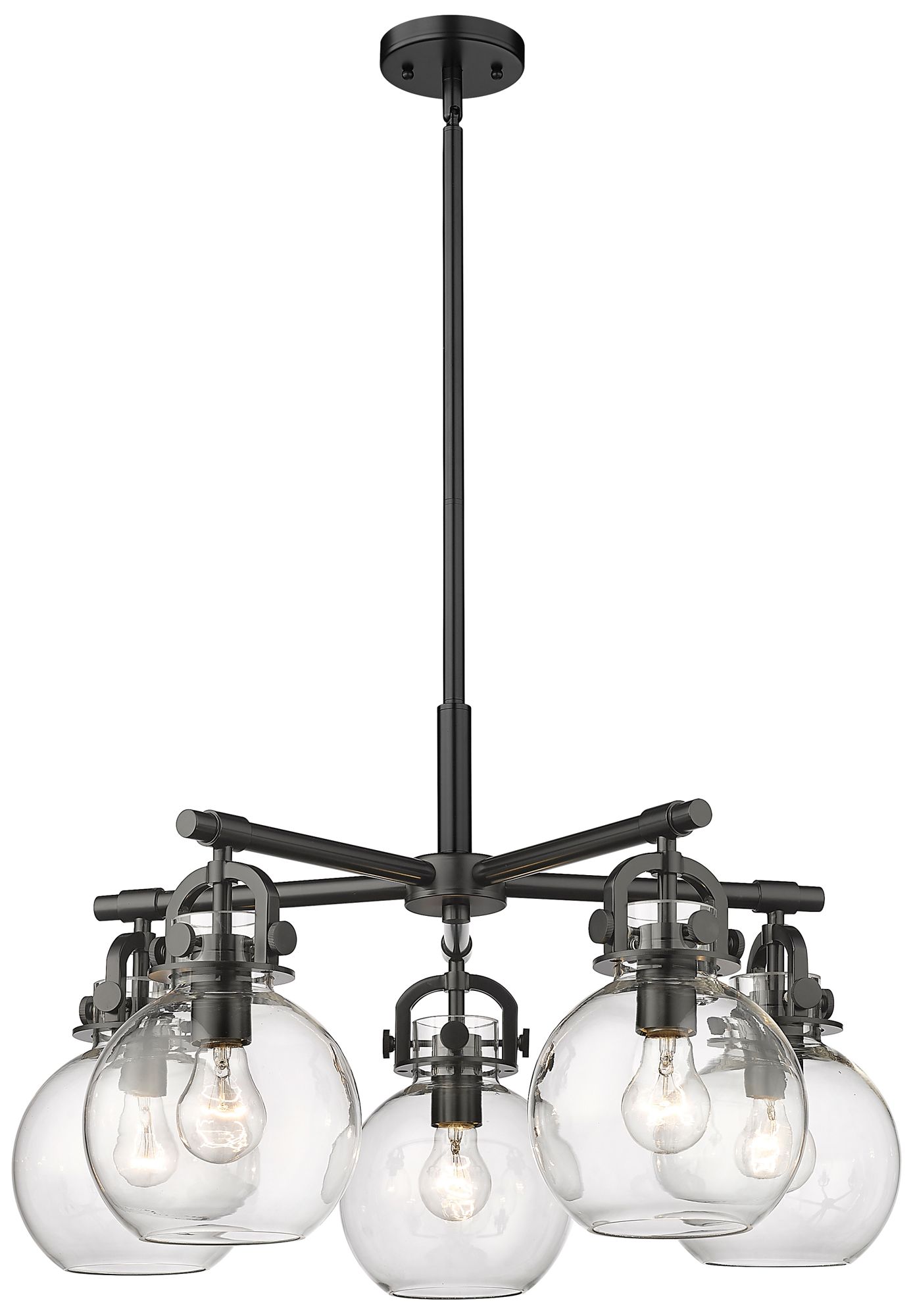 Newton Sphere 26"W 5 Light Matte Black Stem Hung Chandelier w/ Clear S