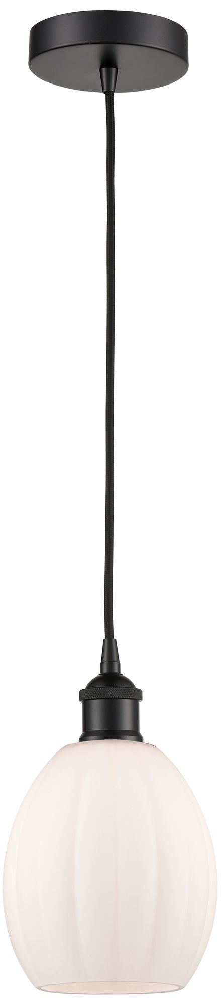 Edison Eaton 6" Matte Black Cord Hung Mini Pendant w/ Matte White Shad
