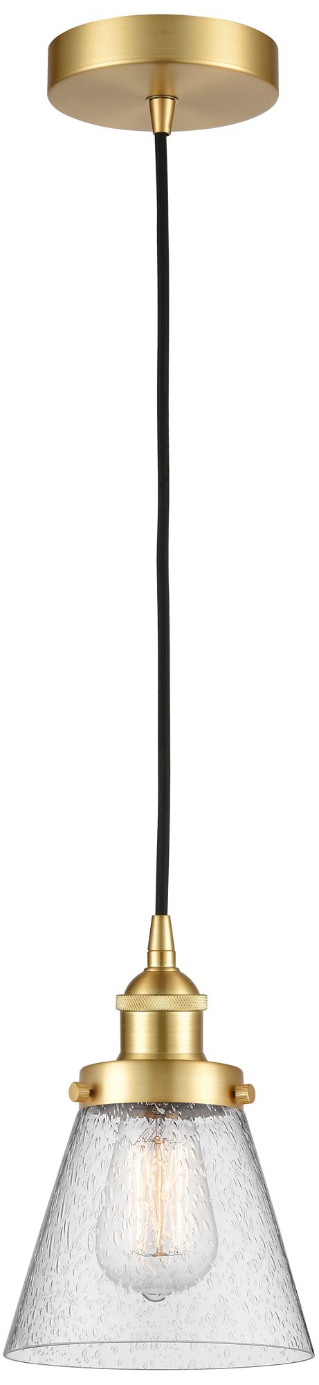 Cone 6" Satin Gold Mini Pendant w/ Seedy Shade