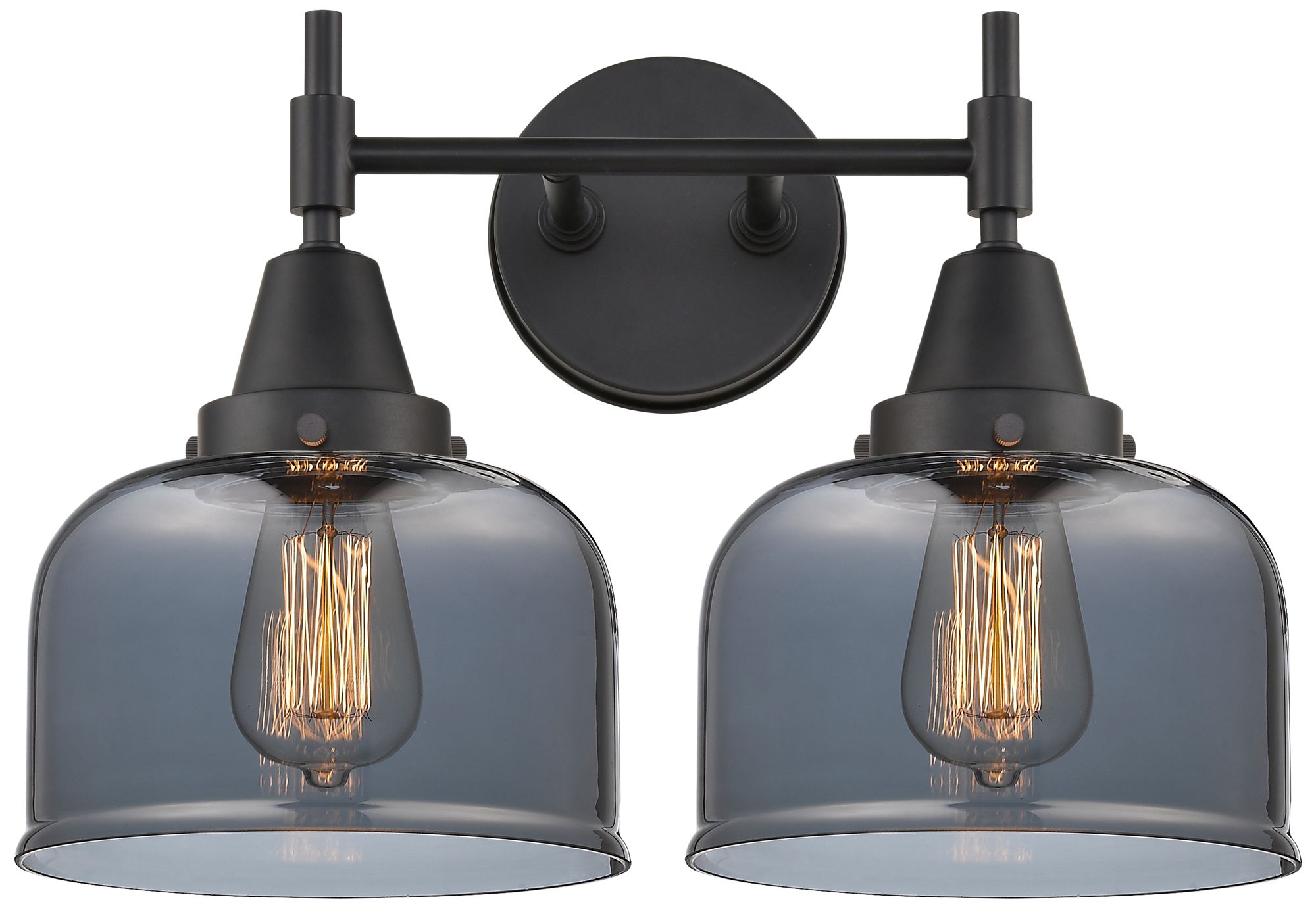 Caden 17" Wide 2 Light Matte Black Bath Vanity Light w/ Plated Smoke S