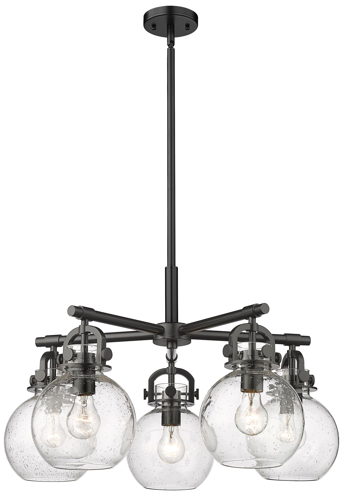 Newton Sphere 26"W 5 Light Matte Black Stem Hung Chandelier w/ Seedy S