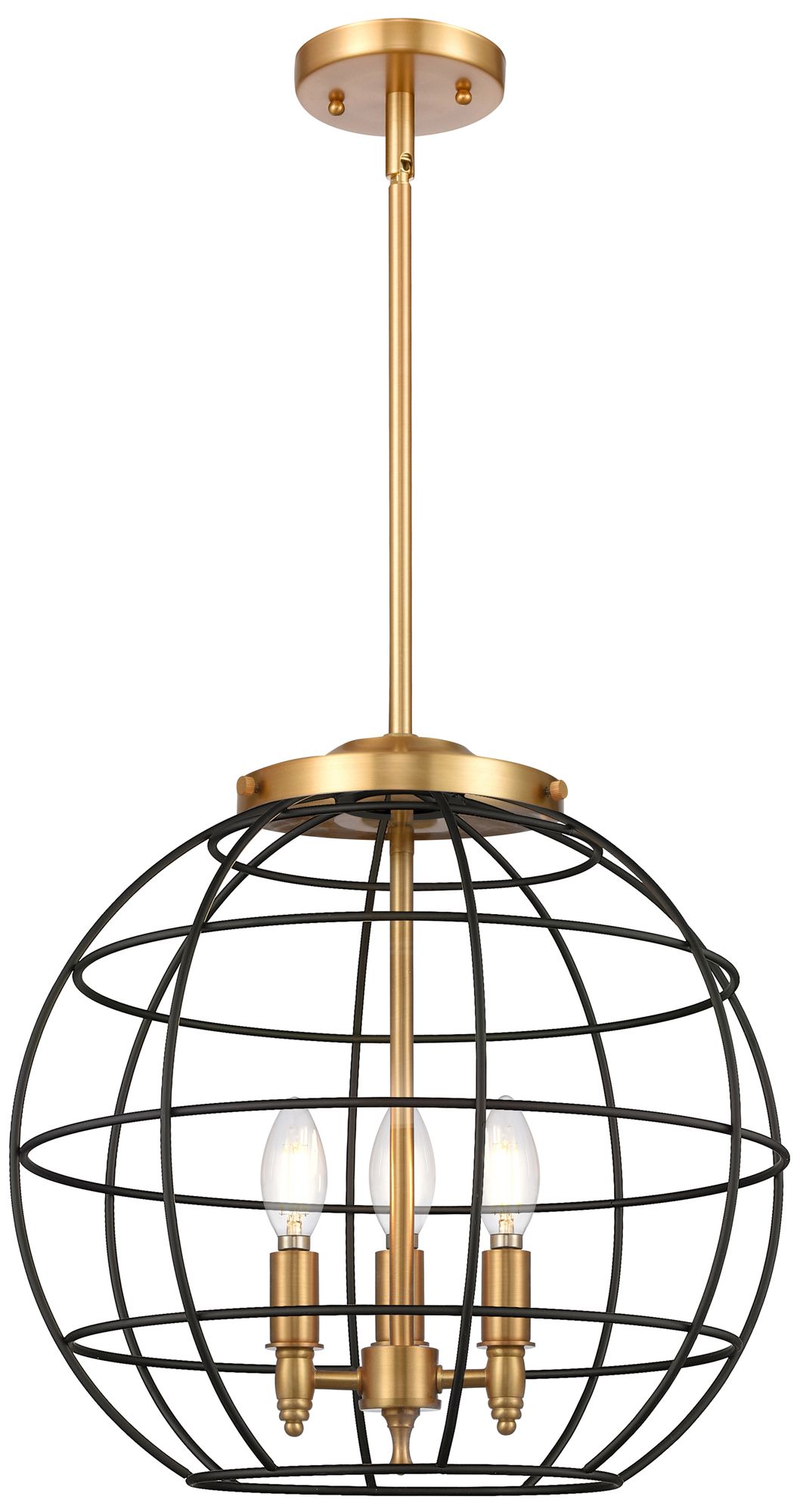 Lake Placid 16"W 3 Light Satin Gold Stem Hung Pendant With Black Shade