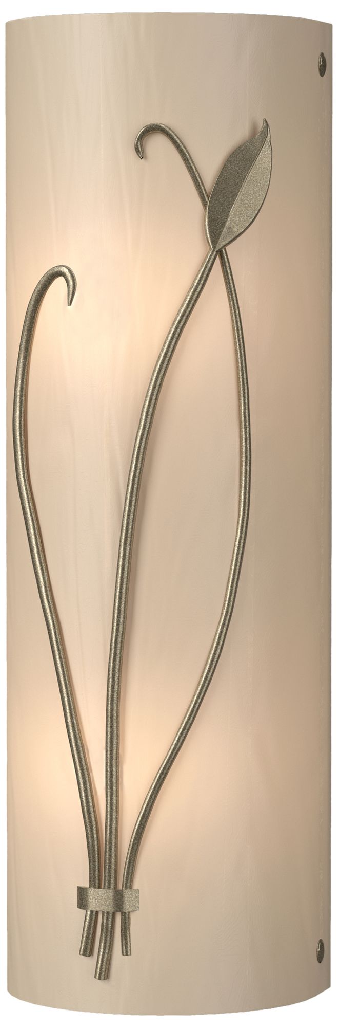 Forged Leaf and Stem 17"H Left Soft Gold Sconce w/ White Art Glass Sha