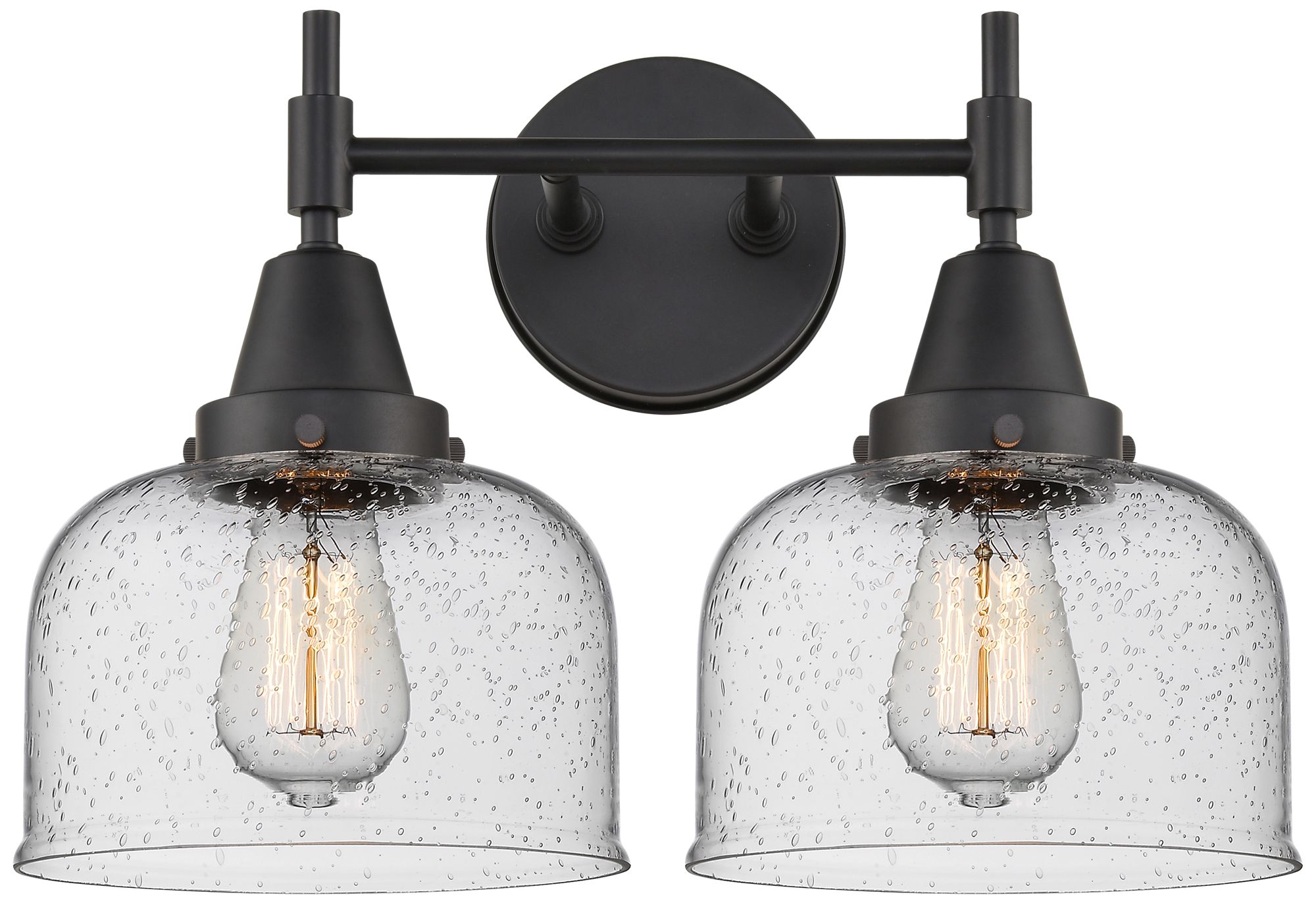 Caden 17" Wide 2 Light Matte Black Bath Vanity Light w/ Seedy Shade