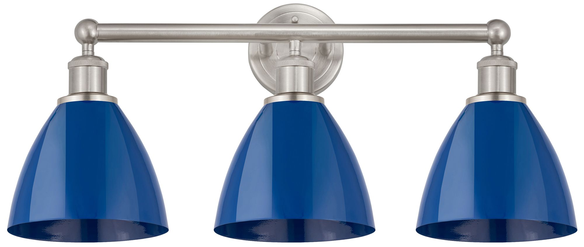 Plymouth Dome 25.5"W 3 Light Satin Nickel Bath Vanity Light w/ Blue Sh