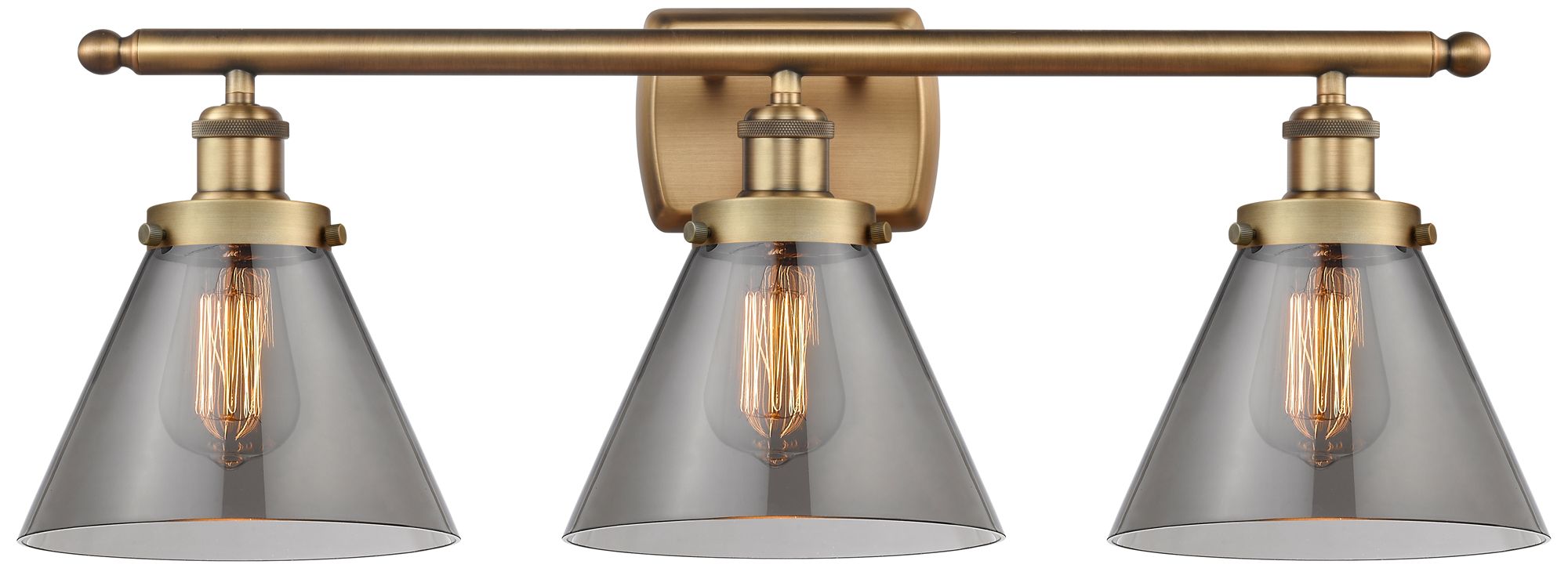 Ballston Urban Cone 28" 3 Light Brushed Brass LED Bath Light w/ Smoke