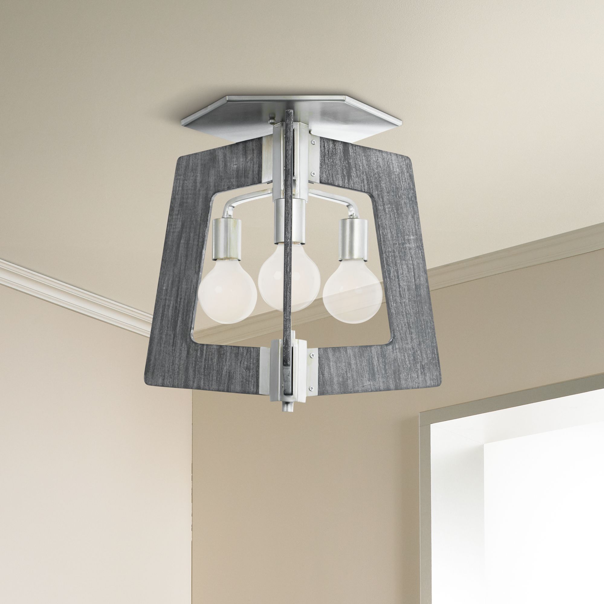 Lofty 18 1/2" Wide Silverado and Gray 3-Light Ceiling Light
