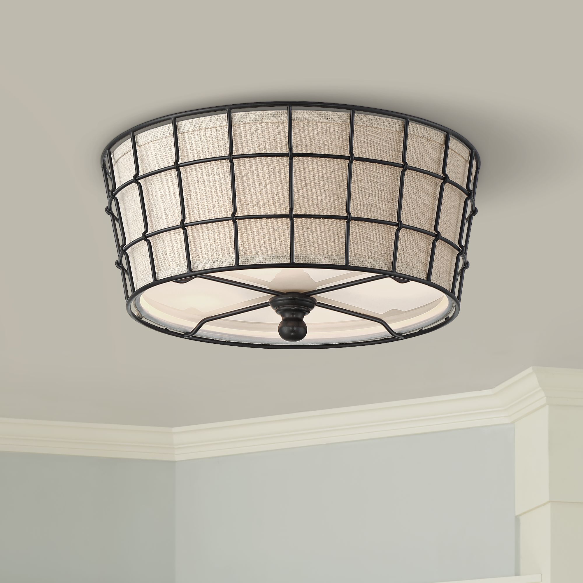 Taya 16" Wide Burlap and Wire Ceiling Light