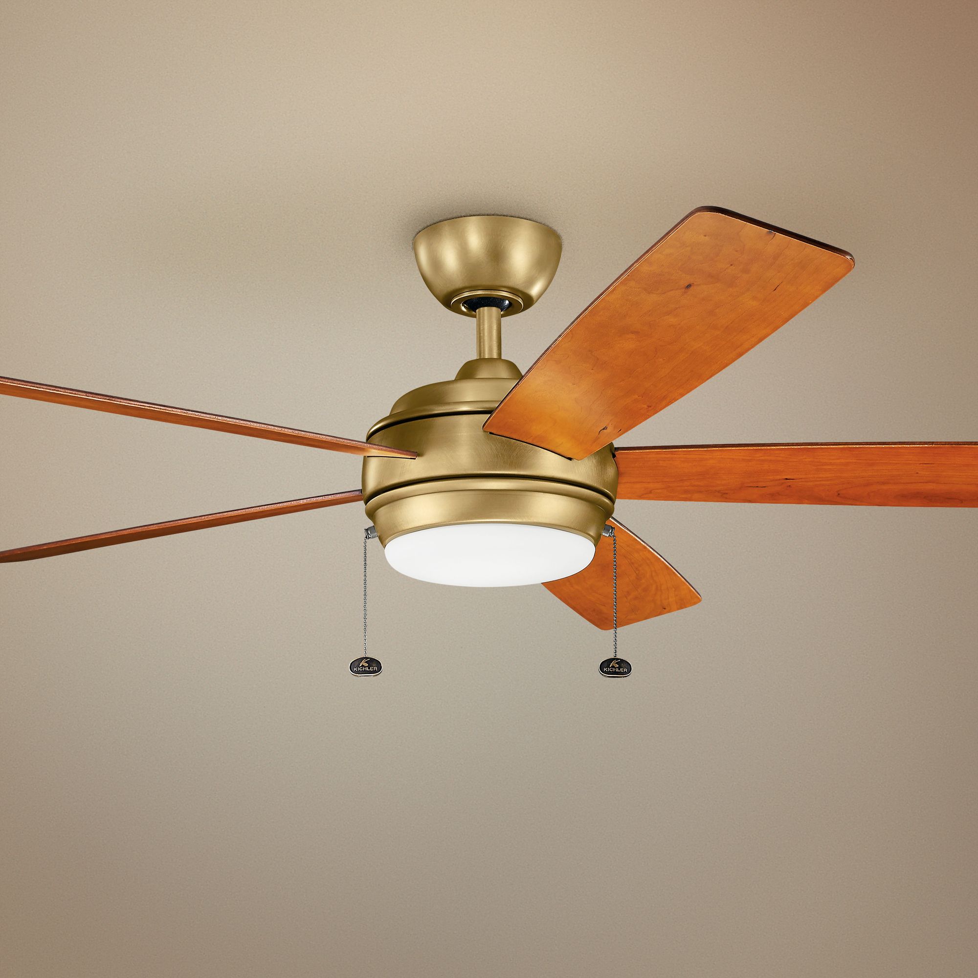 60" Kichler Starkk Natural Brass LED Ceiling Fan with Pull Chain