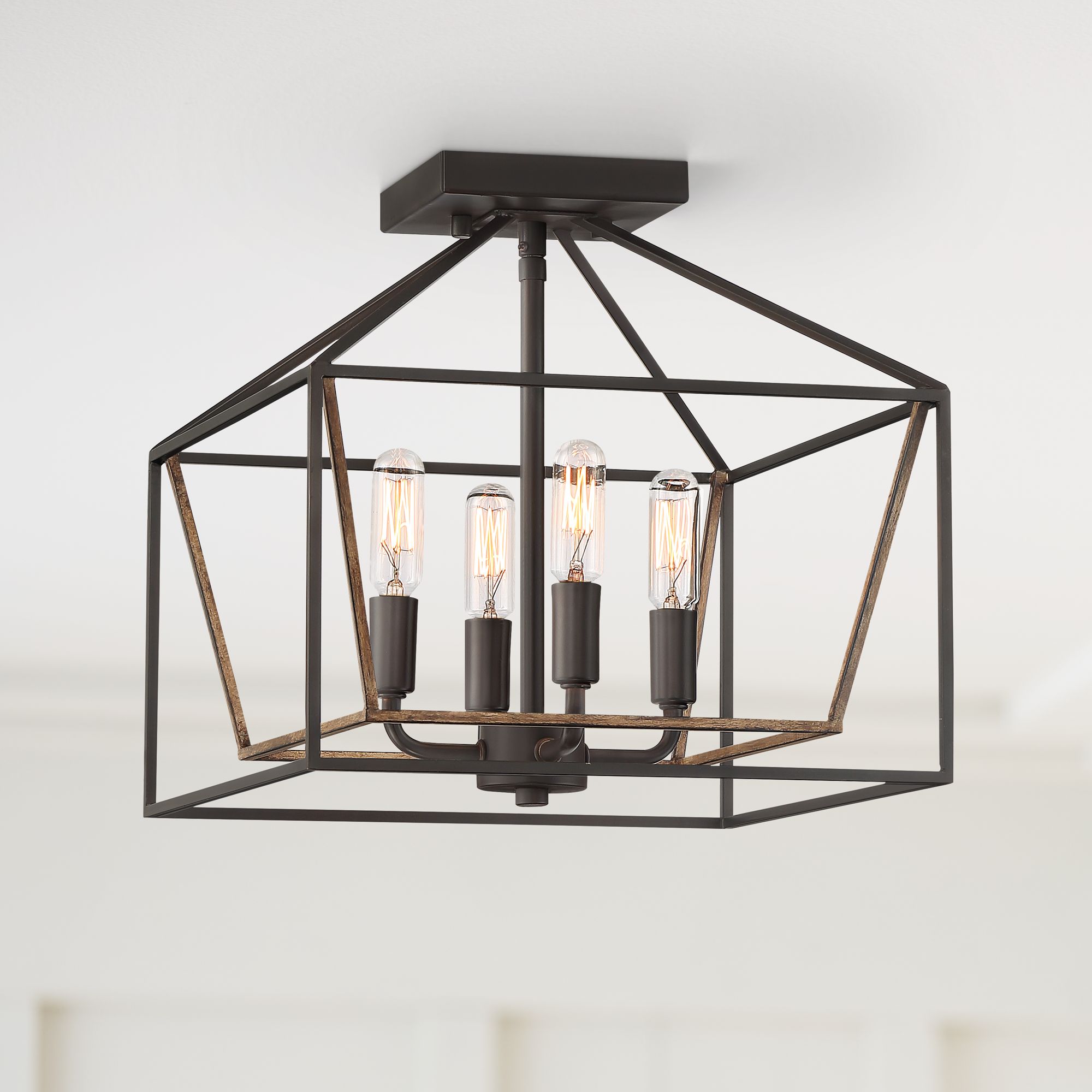 Possini Euro Dinuba 12"W Bronze and Wood Modern Rustic Ceiling Light