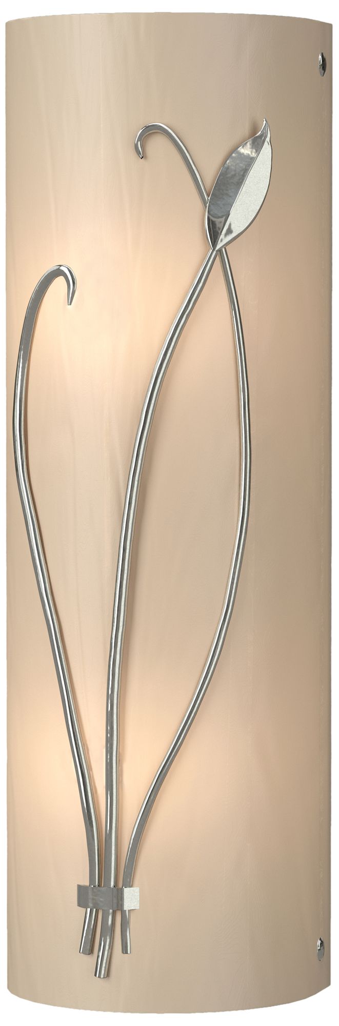Forged Leaf and Stem 17"H Left Sterling Sconce w/ White Art Glass Shad