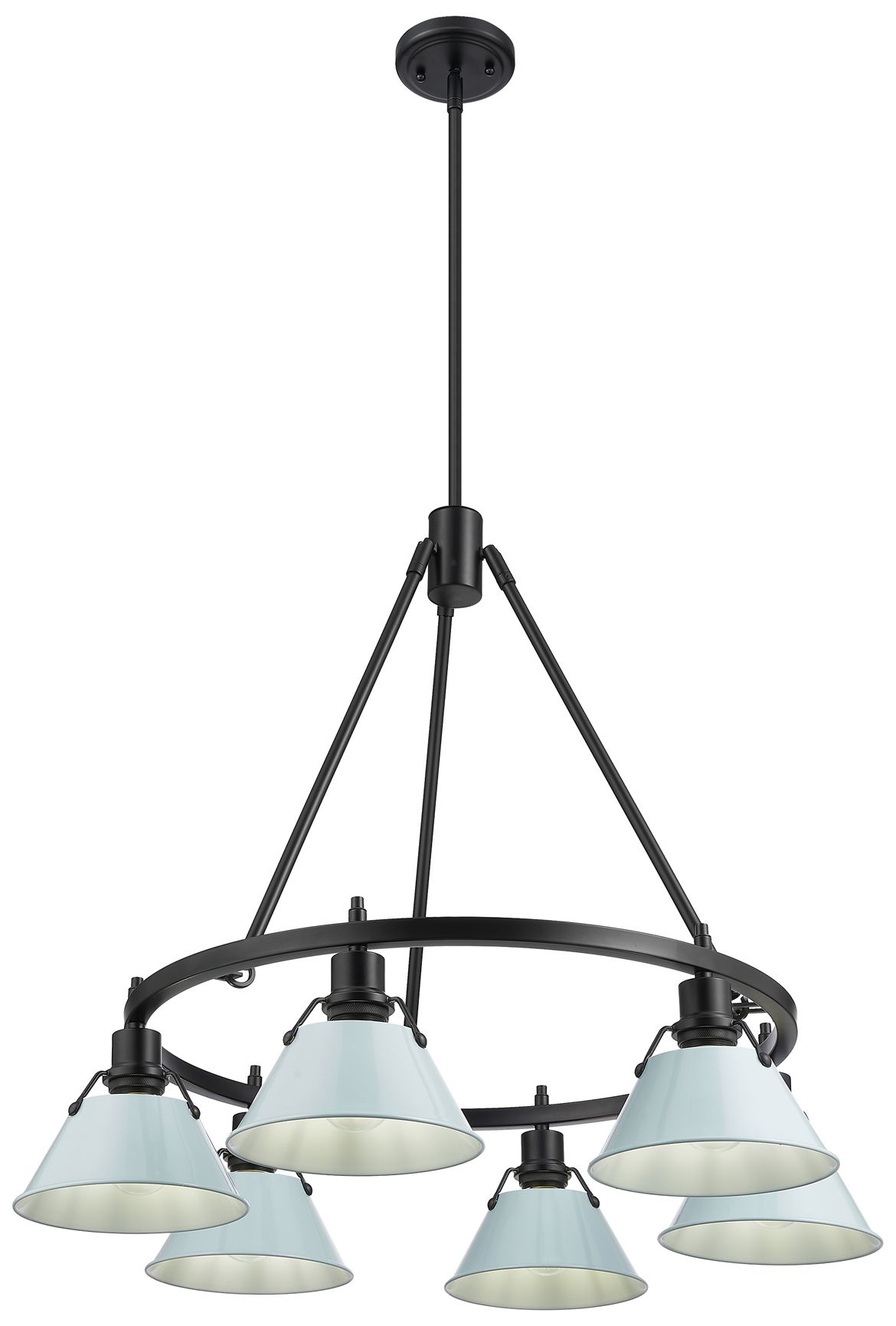 Orwell 29" Wide 6-Light Chandelier in Matte Black with Dusky Blue