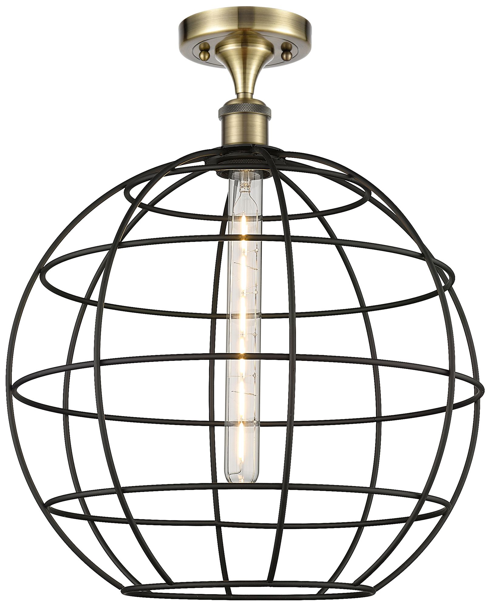 Ballston Lake Placid 16"W Antique Brass Semi.Flush Mount With Black Sh