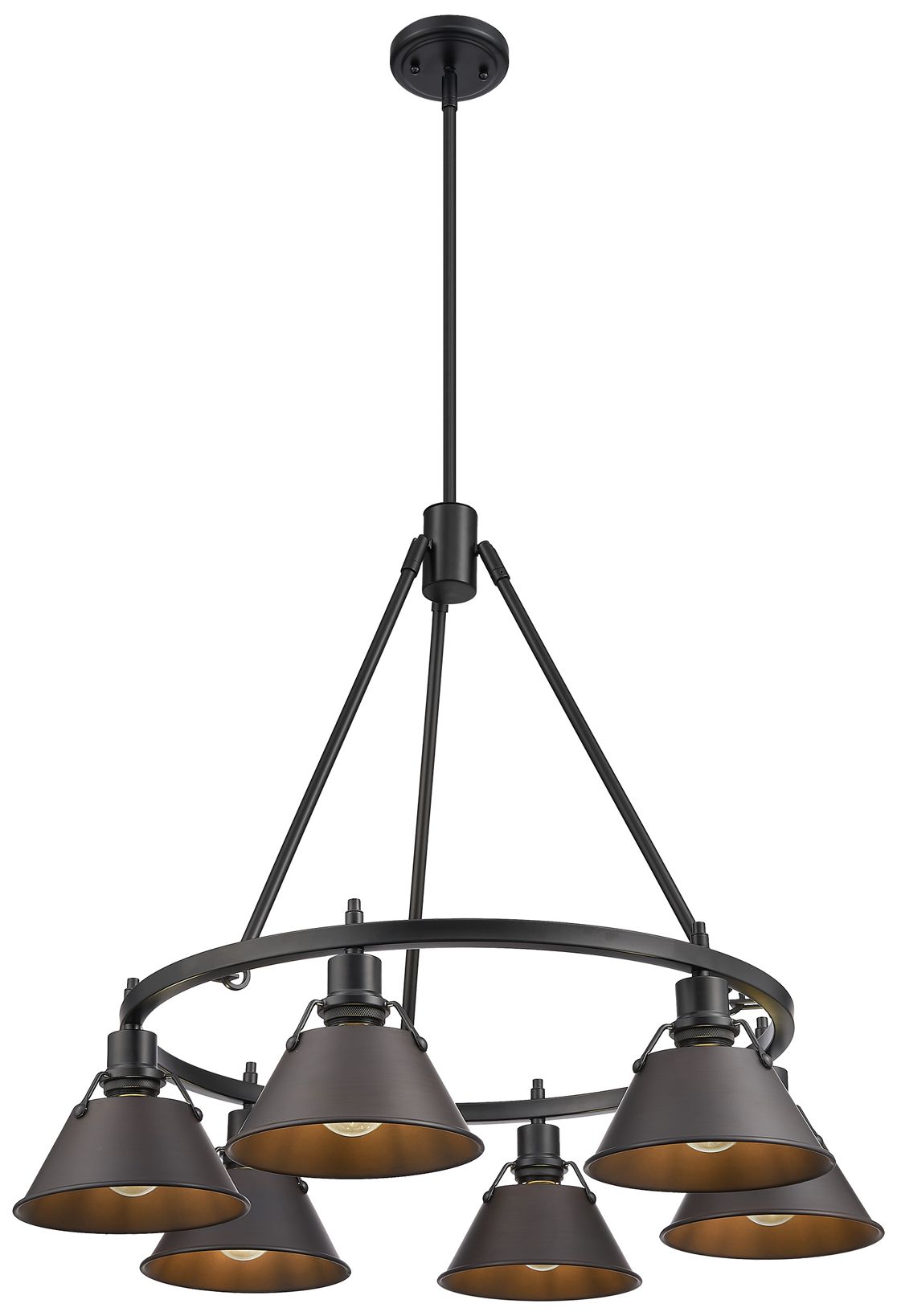 Orwell 29" Wide 6-Light Chandelier in Matte Black with Rubbed Bronze