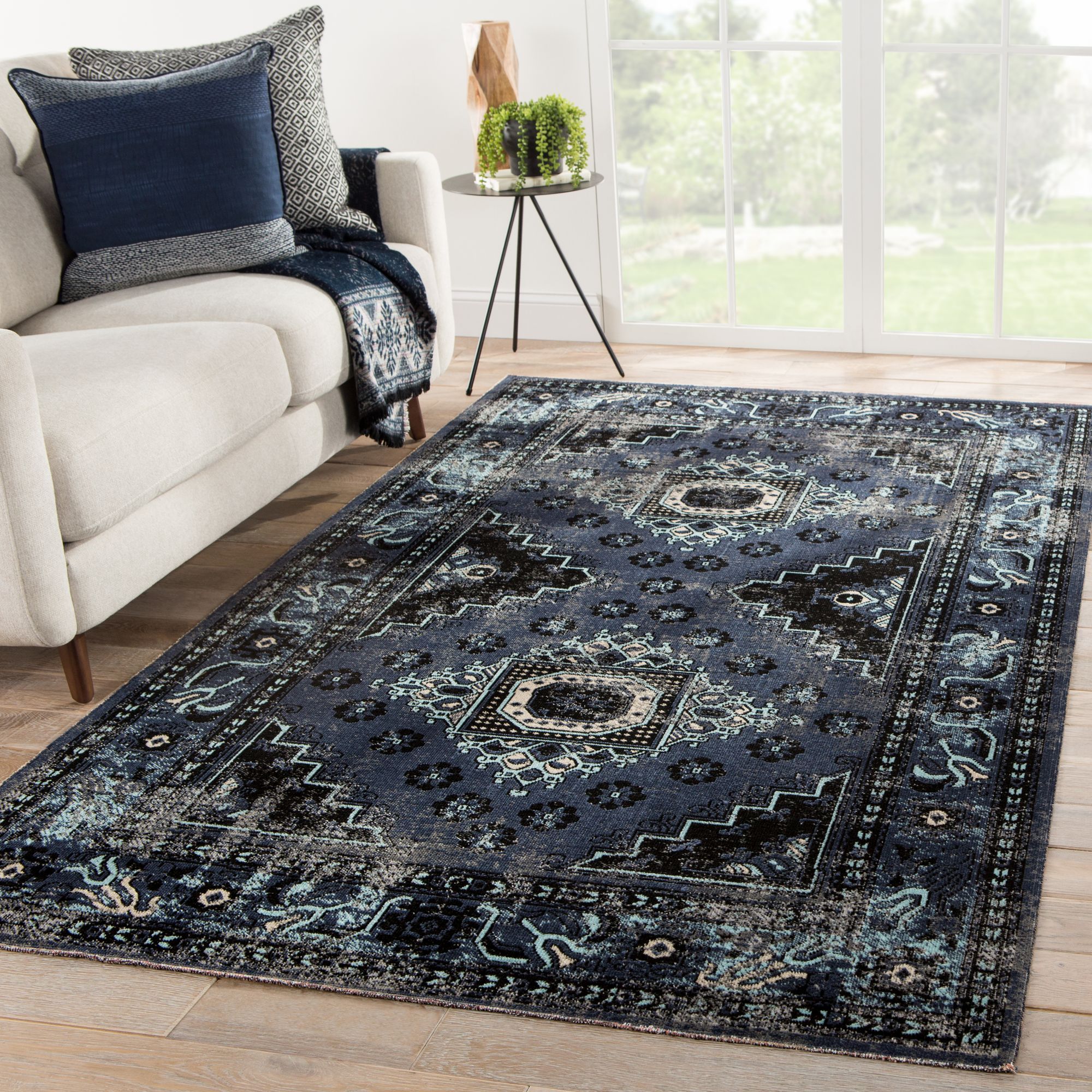 Polaris Westlyn POL24 5'3"x7'6" Black and Blue Area Rug