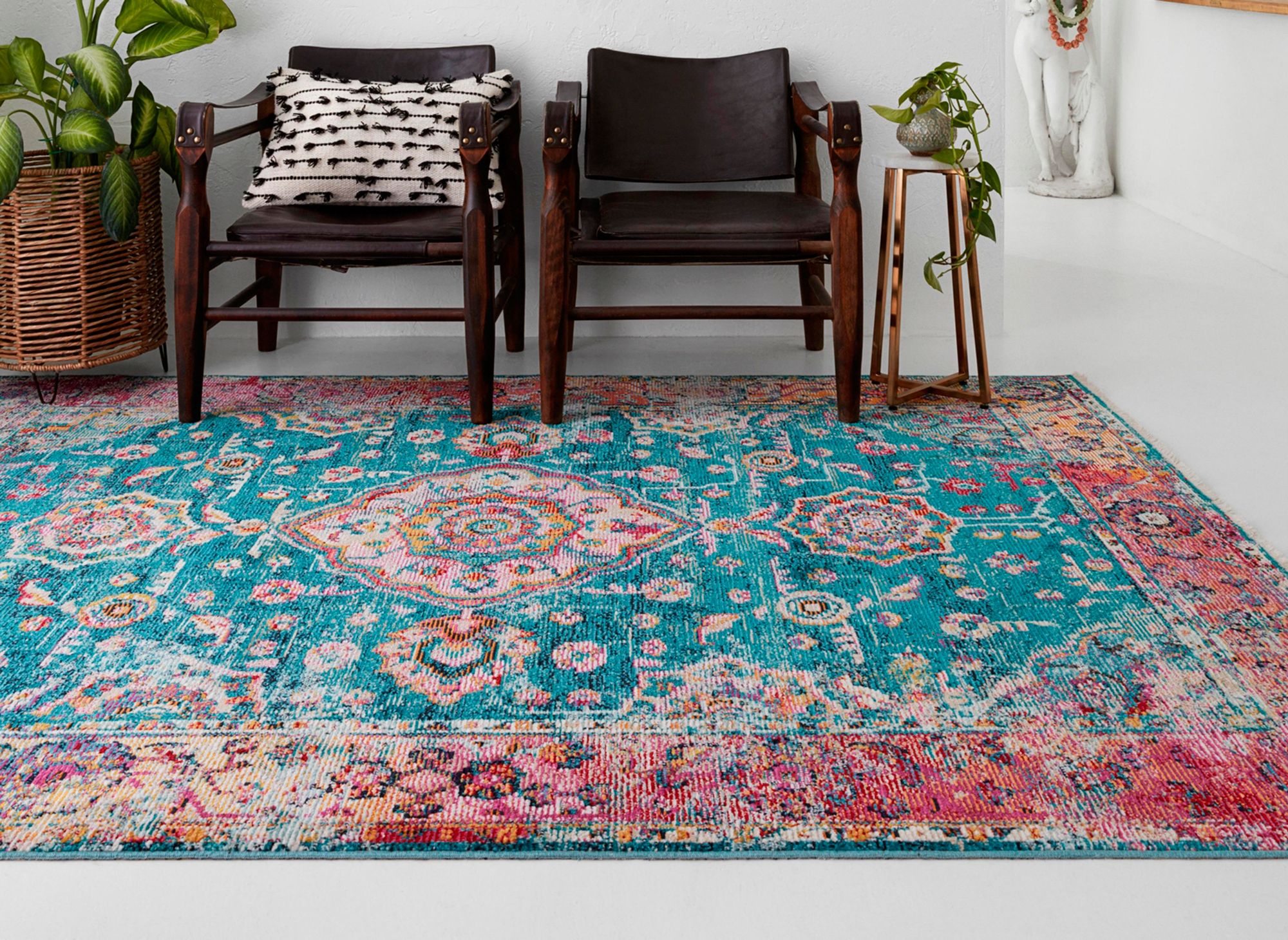 Silvia SIL-02 5'x7'6" Teal and Berry Rectangular Area Rug