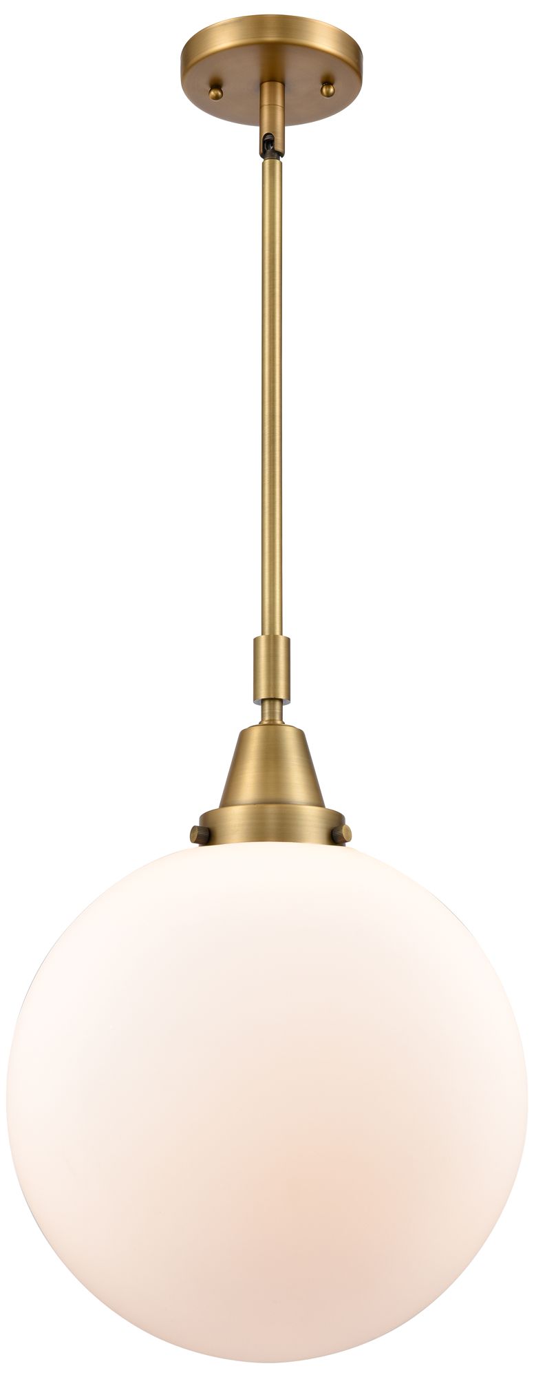Caden Beacon 12" Wide Brushed Brass Stem Hung Mini Pendant w/ White Sh