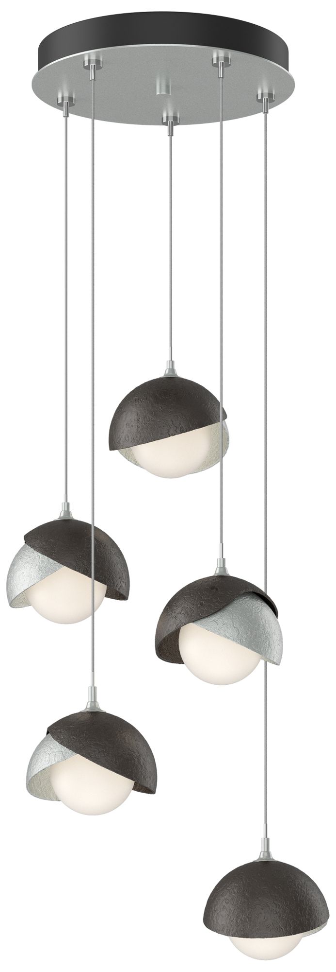 Brooklyn 16"W 5-Light Oiled Bronze Accented Platinum Double Shade Pend
