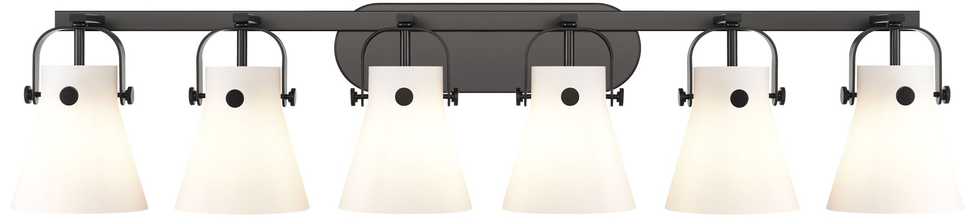 Pilaster II Cone 45.5" Wide 6 Light Matte Black Bath Light With White