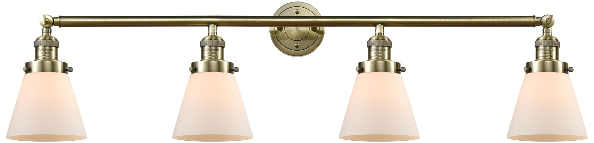 Cone 4 Light 42" Bath Light - Antique Brass - Matte White Shade