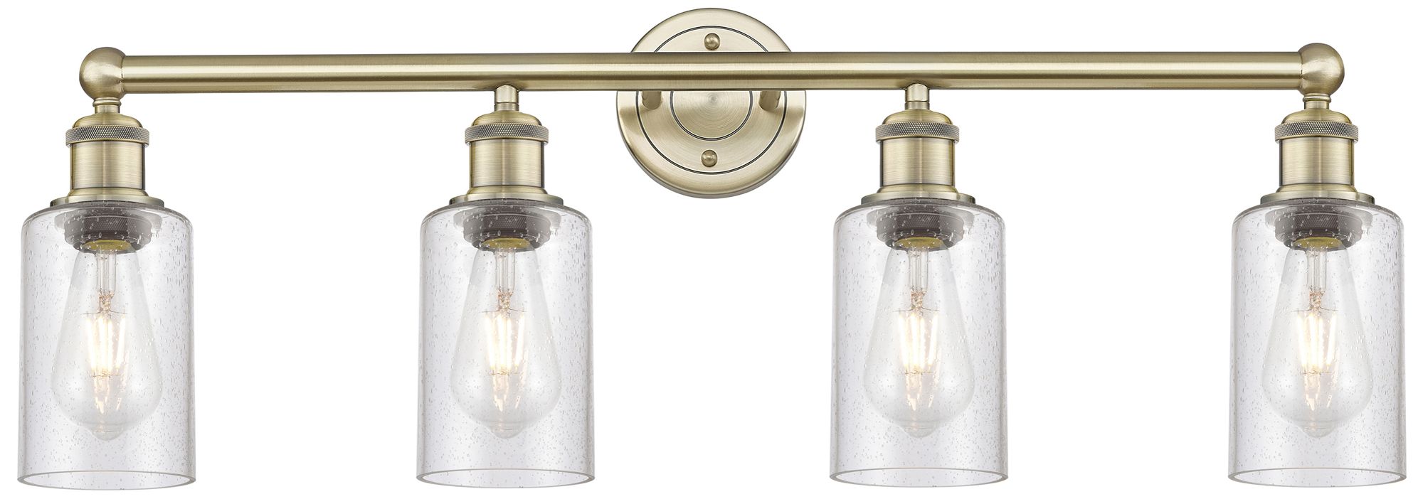 Clymer 30.88" Wide 4 Light Antique Brass Bath Vanity Light With Seedy