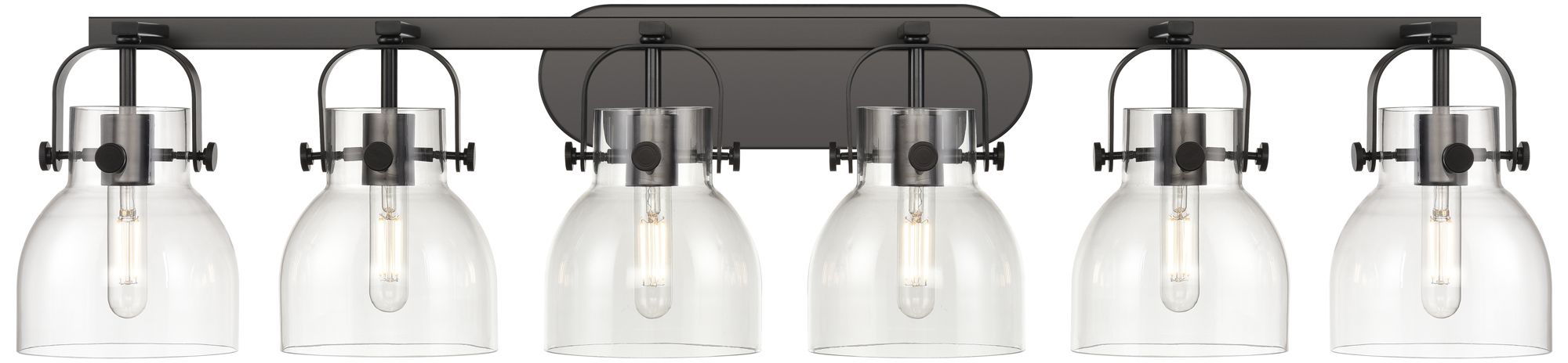 Pilaster II Bell 45.5" Wide 6 Light Matte Black Bath Light With Clear