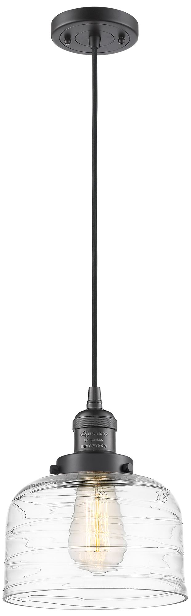 Franklin Bell 8" Wide Bronze Corded Mini Pendant w/ Deco Swirl Shade