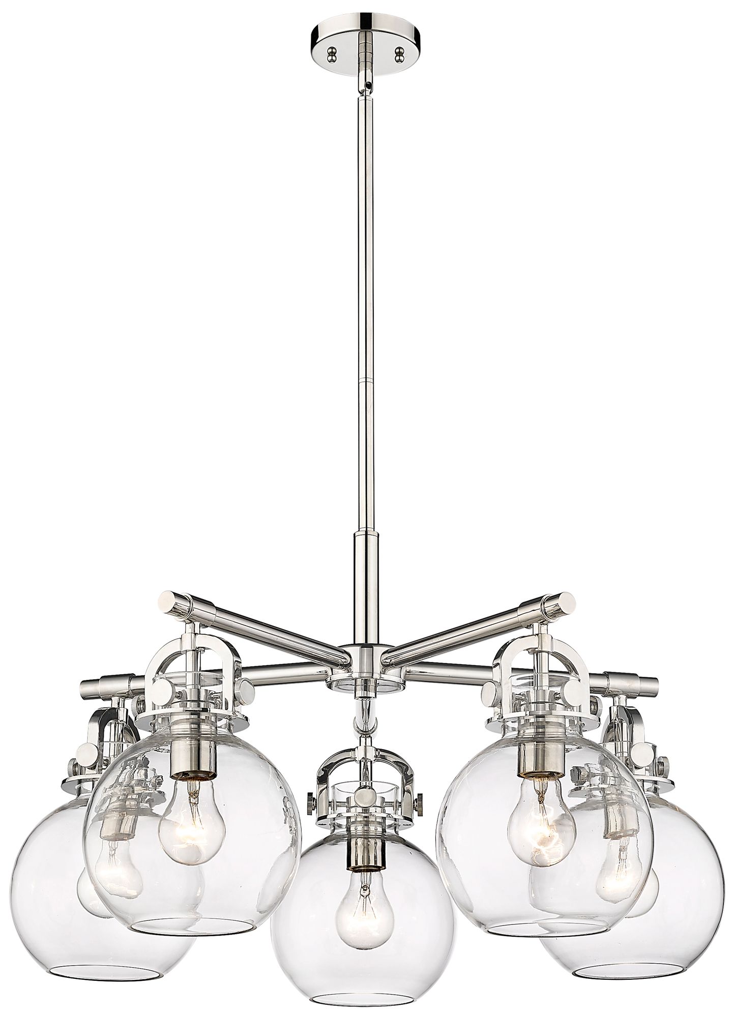 Newton Sphere 26"W 5 Light Polished Nickel Stem Chandelier w/ Clear Sh