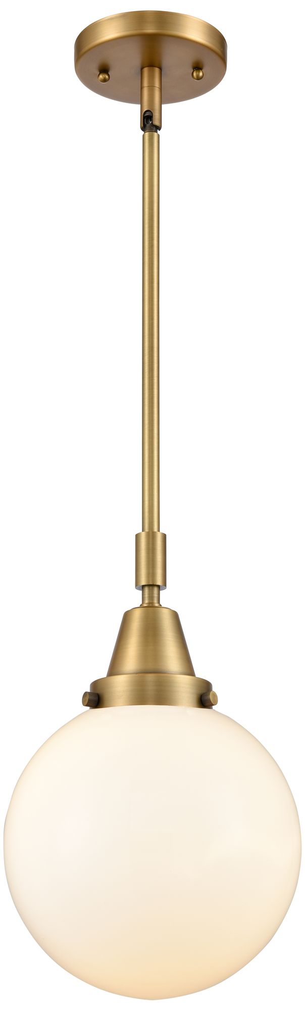 Caden Beacon 8" Wide Brushed Brass Stem Hung Mini Pendant w/ White Sha