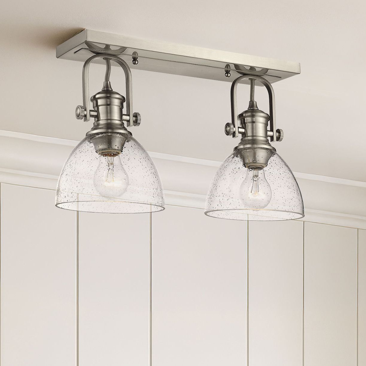 Hines 17 7/8" Wide Pewter 2-Light Semi-Flush With Seeded Glass