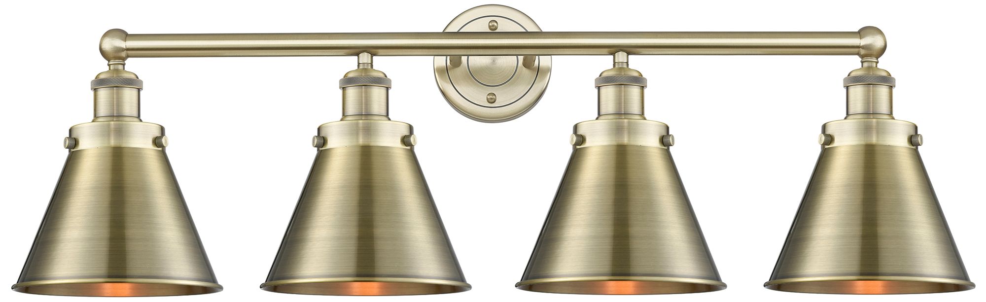 Appalachian 35"W 4 Light Antique Brass Bath Light w/ Antique Brass Sha