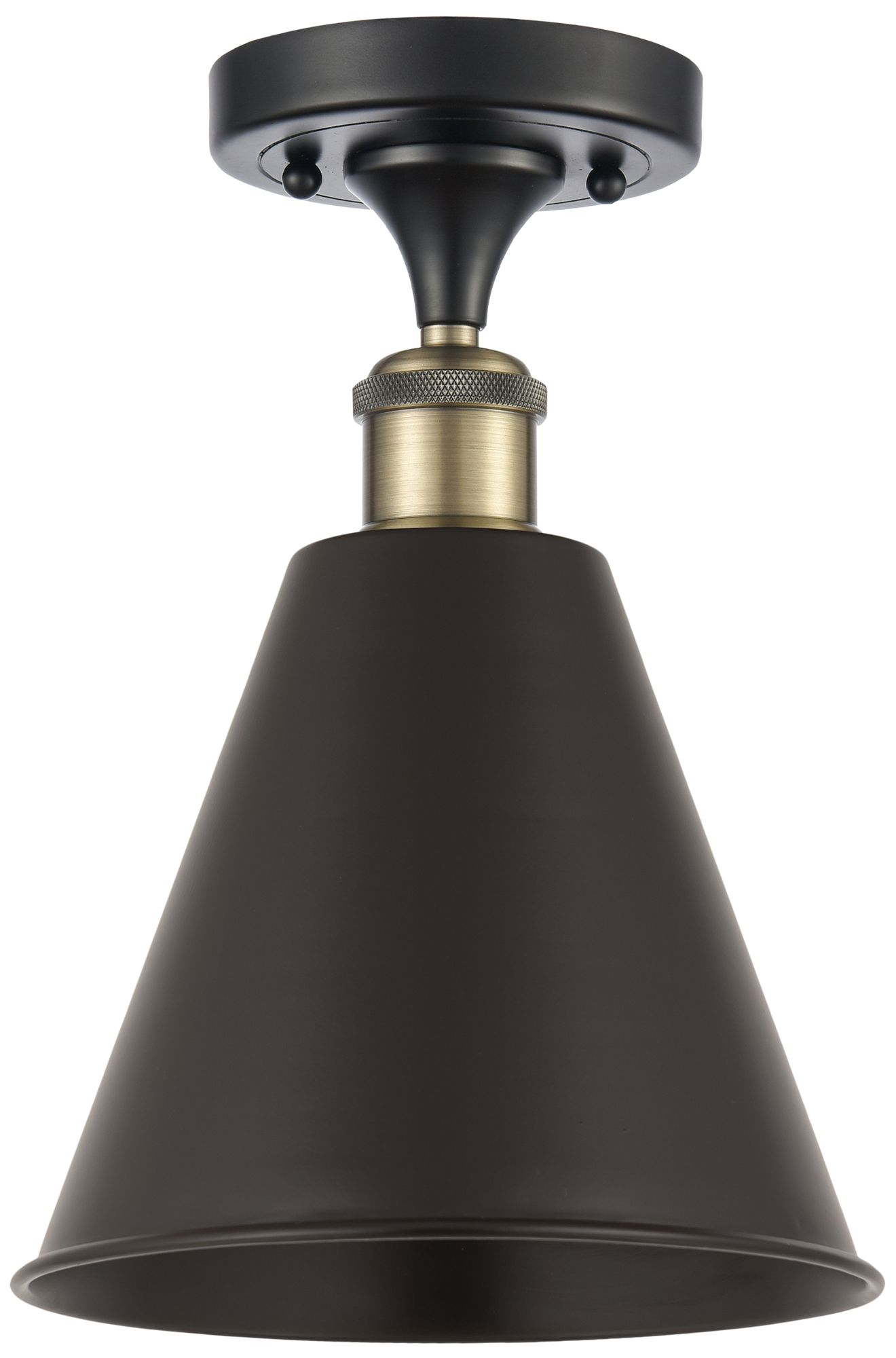 Ballston Cone 8"W Black Antique Brass Semi.Flush Mount With Black Shad