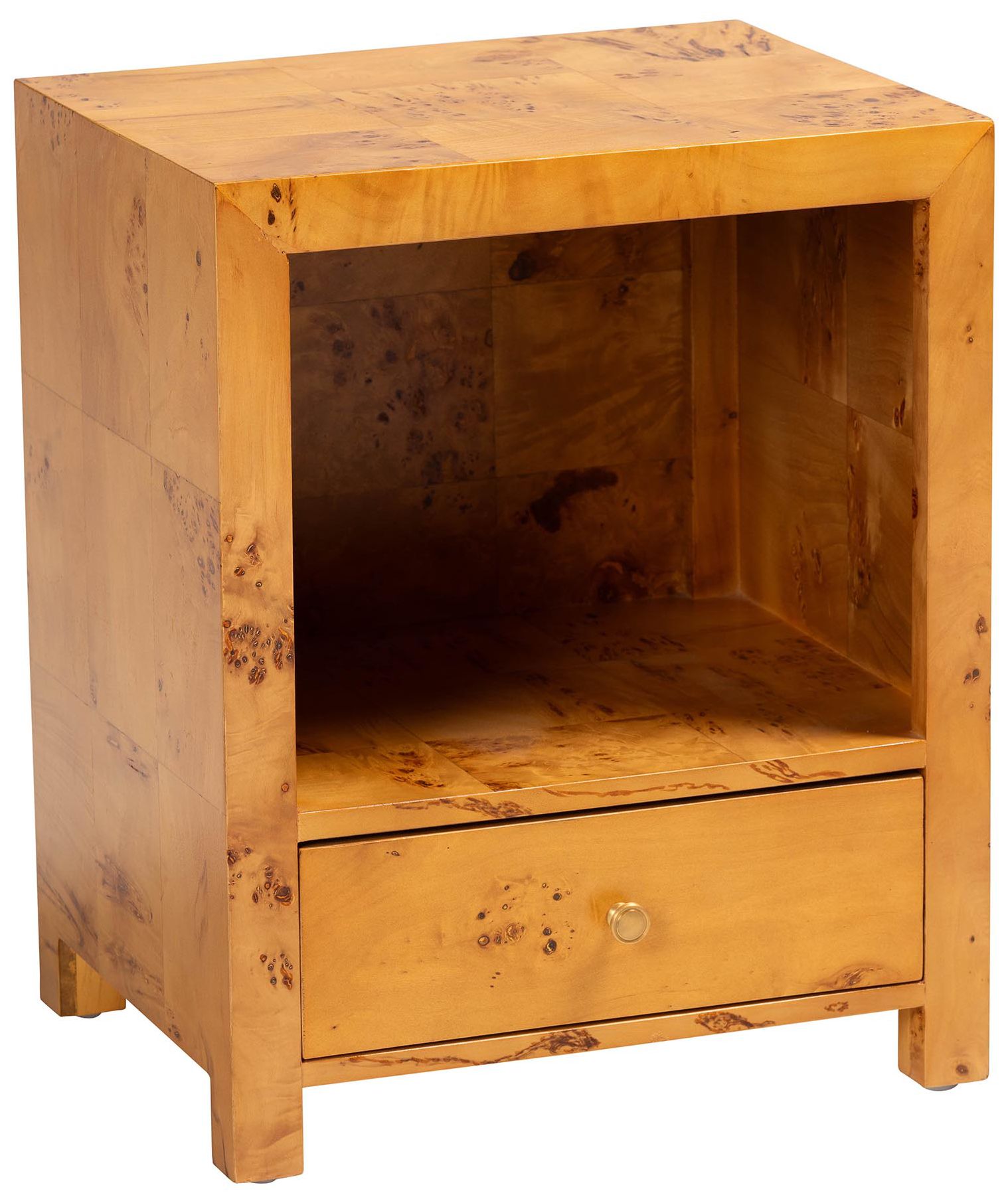 bali & pari Camira Natural Light Mappa Burl Wood 1-Drawer Nightstand