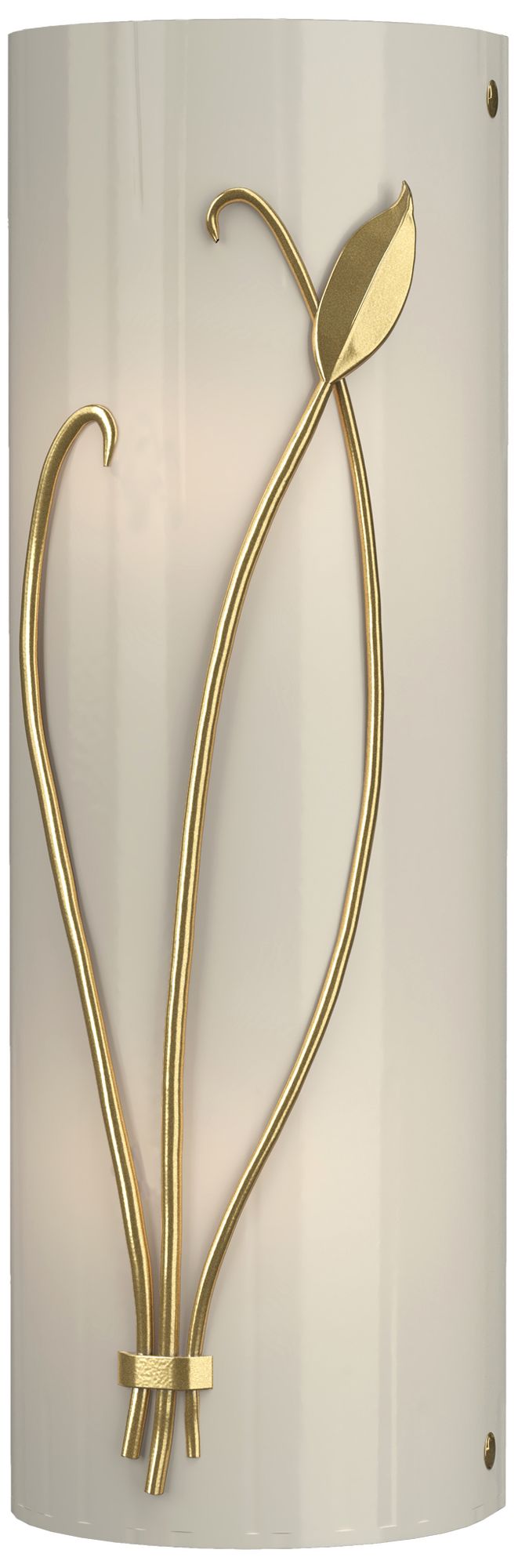 Forged Leaf and Stem 17"H Left Modern Brass Sconce w/ Ivory Art Glass