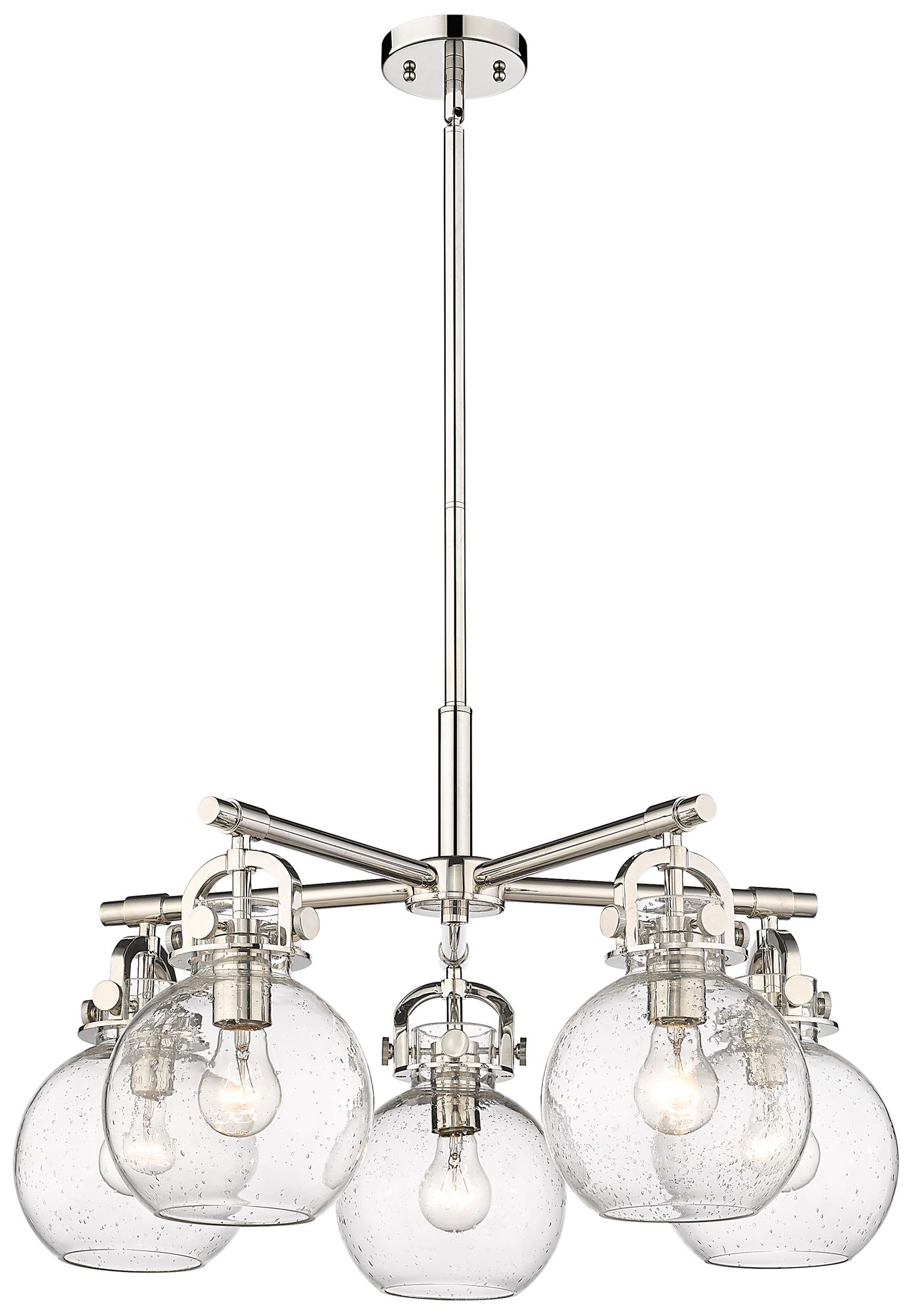 Newton Sphere 26"W 5 Light Polished Nickel Stem Chandelier w/ Seedy Sh